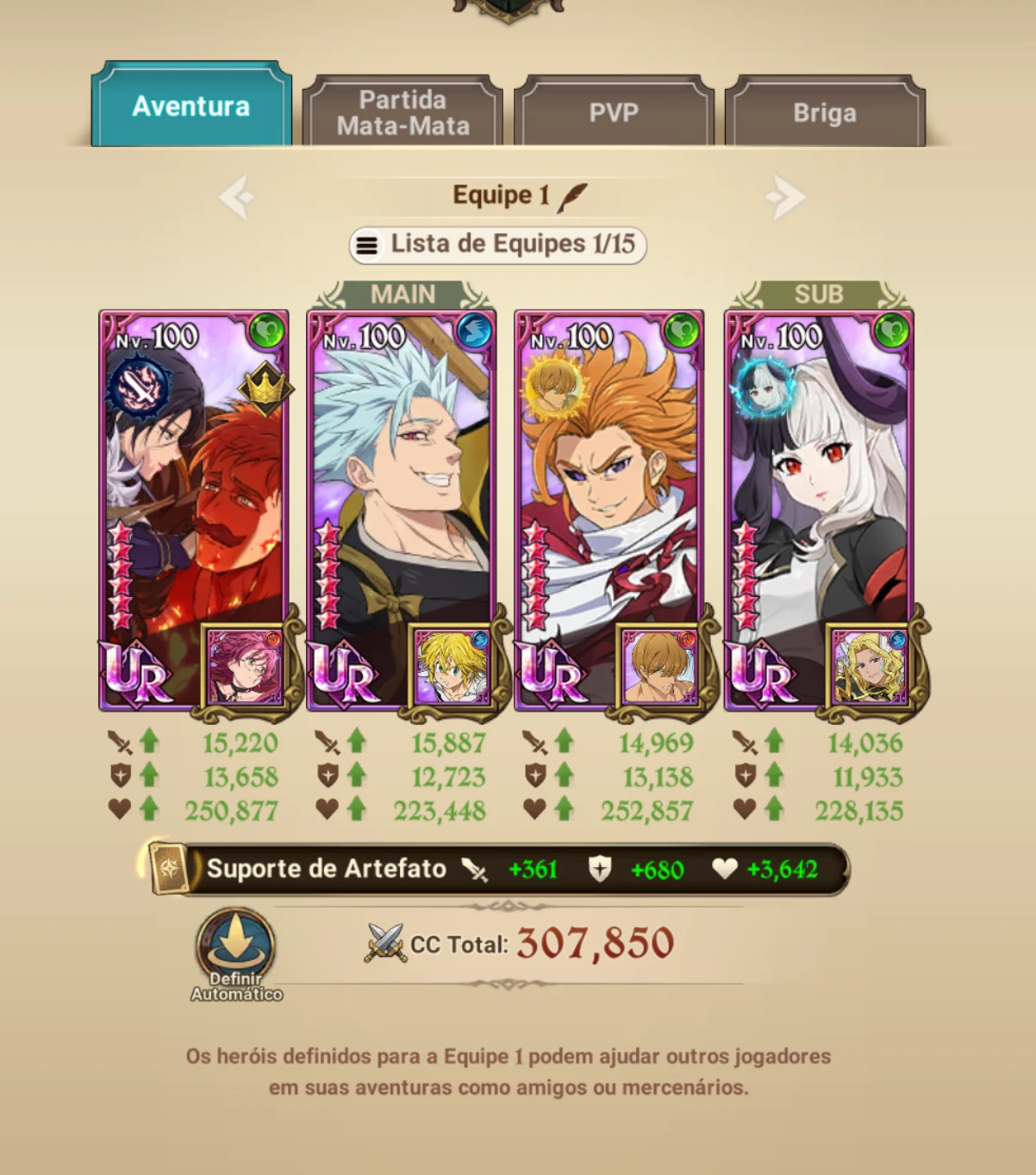 * Destaque para Arthur (Chaos) está com relíquia, Hell 4/6, e Ban transcendental (compondo time principal).