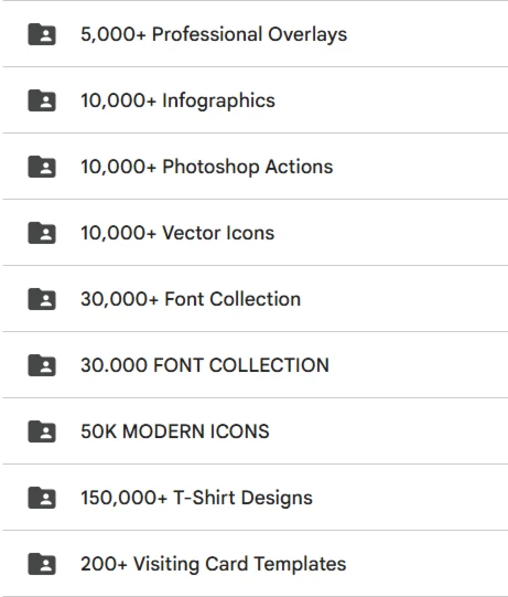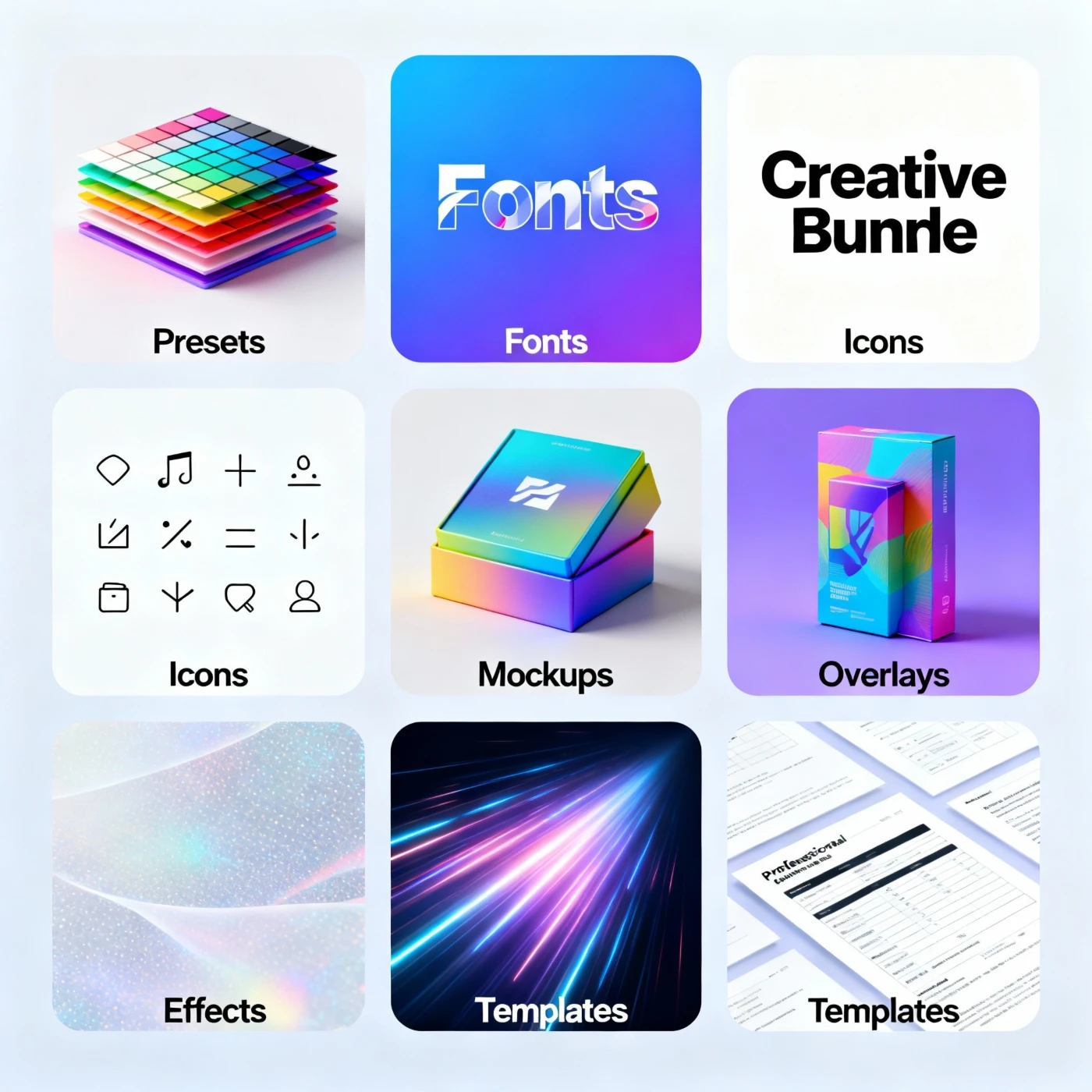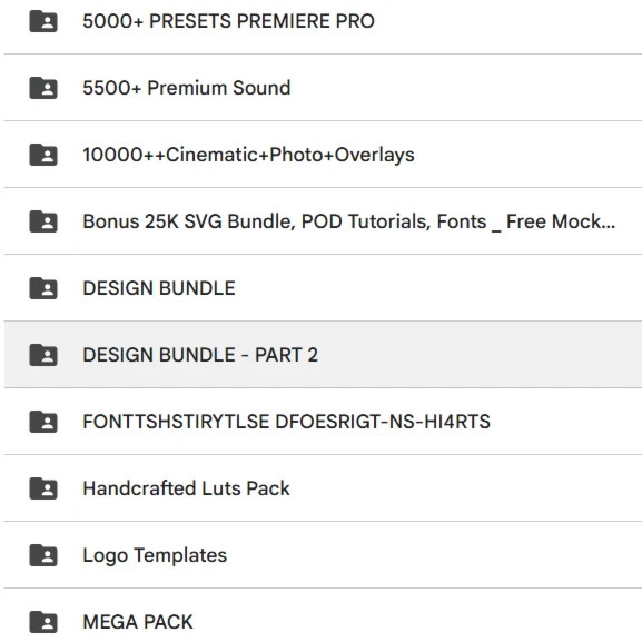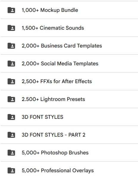Transforme seu fluxo criativo e agilize seus projetos com o Mega Pack definitivo para designers, editores e empreendedores! Você terá acesso instantâneo a milhares de presets para [conteúdo removido] , sons premium, overlays cinematográficos, fontes exclusivas, mockups, ícones modernos, templates para redes sociais, flyers, cartões e muito mais em um só lugar.