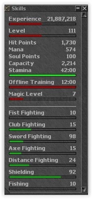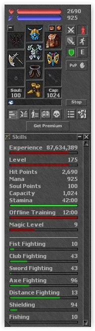 Elite Knight 175 skills: 96/94 ml:9 - Tibia